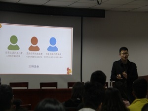 此次培训采取讲座与团队活动相结合的形式。活动伊始,陈恺盛老师为同学们讲授有关心理健康教育方面的知识,使心灵使者们明确自身定位和肩负的责任,对自己的职务有更深入的了解。此外,陈老师还对心灵使者的工作要领和方法技巧进行细致解读,向同学们介绍了及时发现并解决学生心理问题的重要性以及为同学们排忧解难的具体方法。随后,王显尊教授组织同学们进行了相似圈、解开千千结、不倒翁、盲行等一系列心理体验活动,同学们积极参与,现场气氛活跃欢快。这些活动不仅以循循善诱的方式使同学们认识到自身爱好的普遍性,鼓励同学们主动探索互相信任、培养团队凝聚力的渠道,而且丰富了同学们的心理学知识。